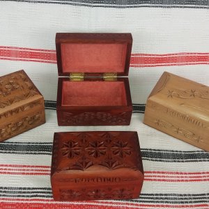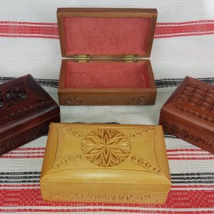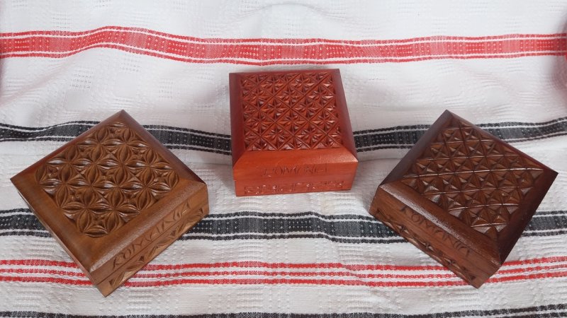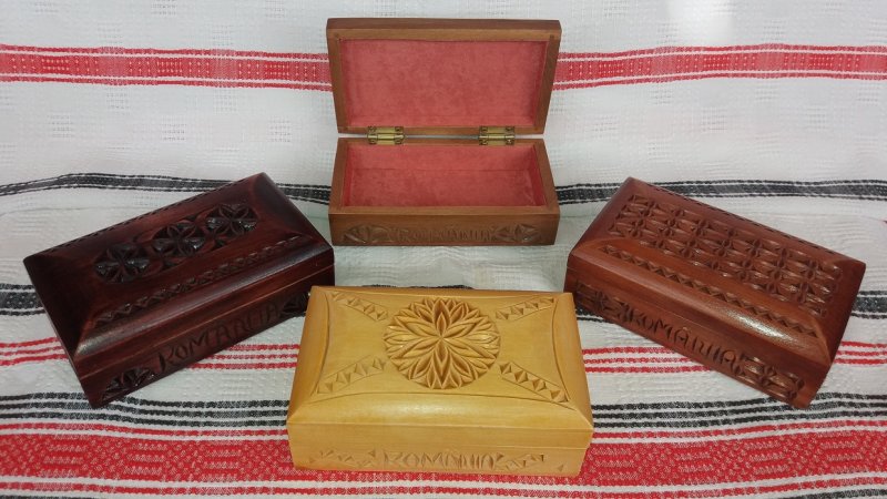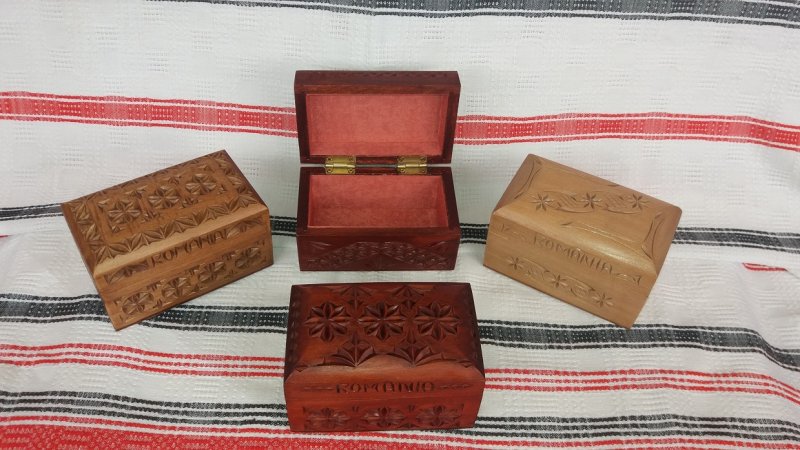Casetă din lemn sculptată, diverse dimensiuni - 13 cm x 7,5 cm x 7,5 cm - 12 cm x 9 cm x 7 cm - 14,5 cm x 8,5 cm x 5 cm - 10 cm x 10 cm x 5 cm