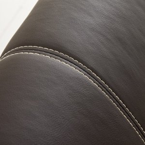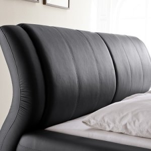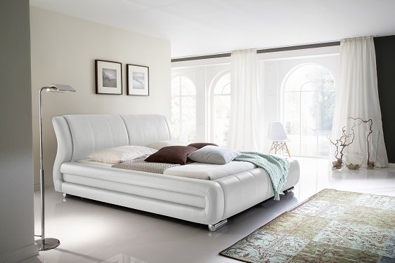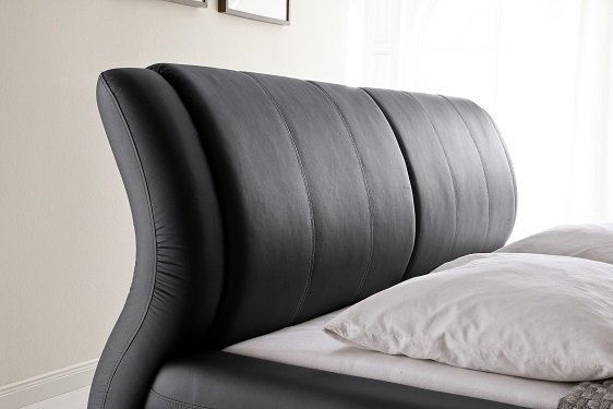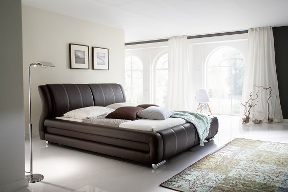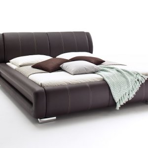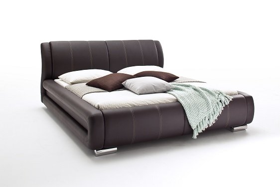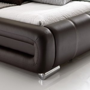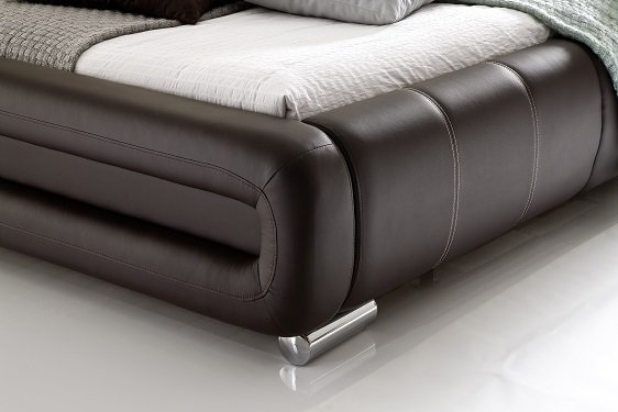 Pat capitonat cu tapițerie din imitație de piele si picioare metalice cromate.