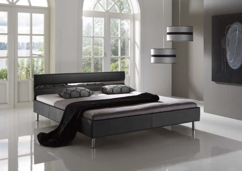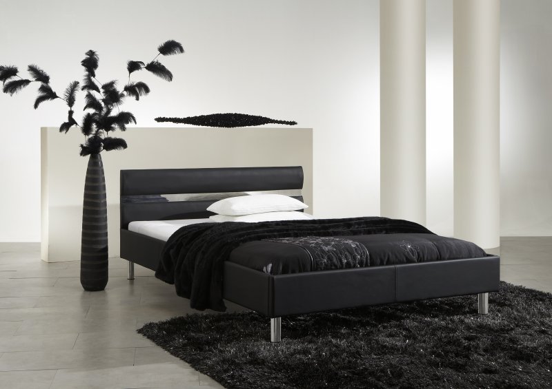 Pat tapitat cu piele ecologica cu picioare metalice cromate. Culori disponibile: alb, negru.