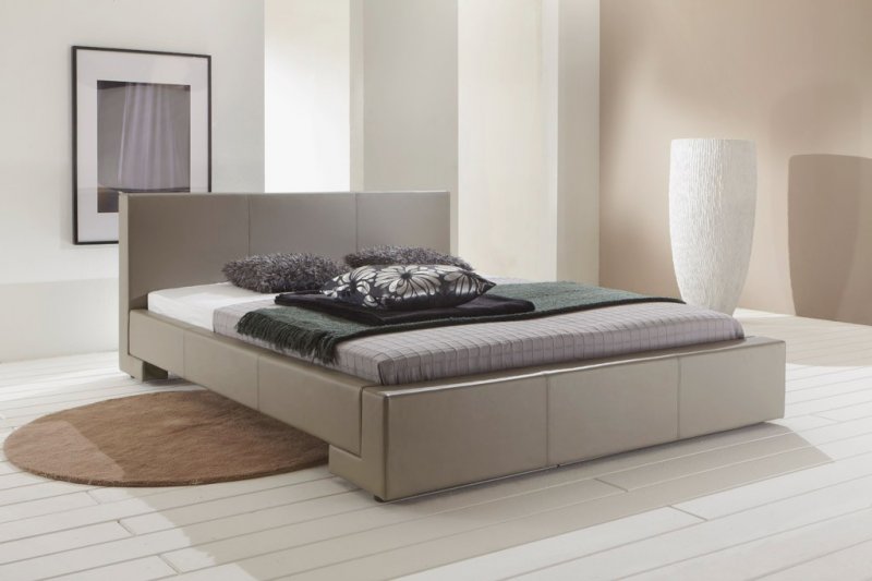 Pat tapitat cu piele ecologica cu picioare metalice cromate. Culori disponibile: muddy (bej).