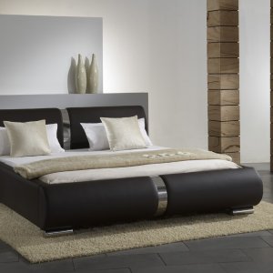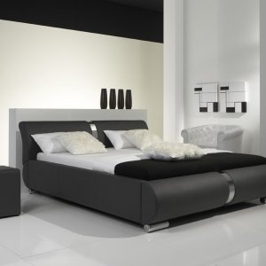 Pat capitonat cu tapițerie din imitație de piele,